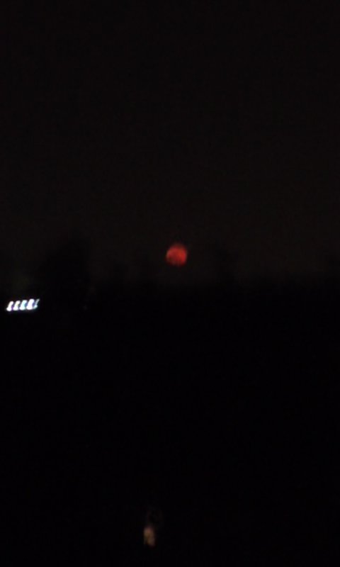 お…お月さんが真っ赤だ。