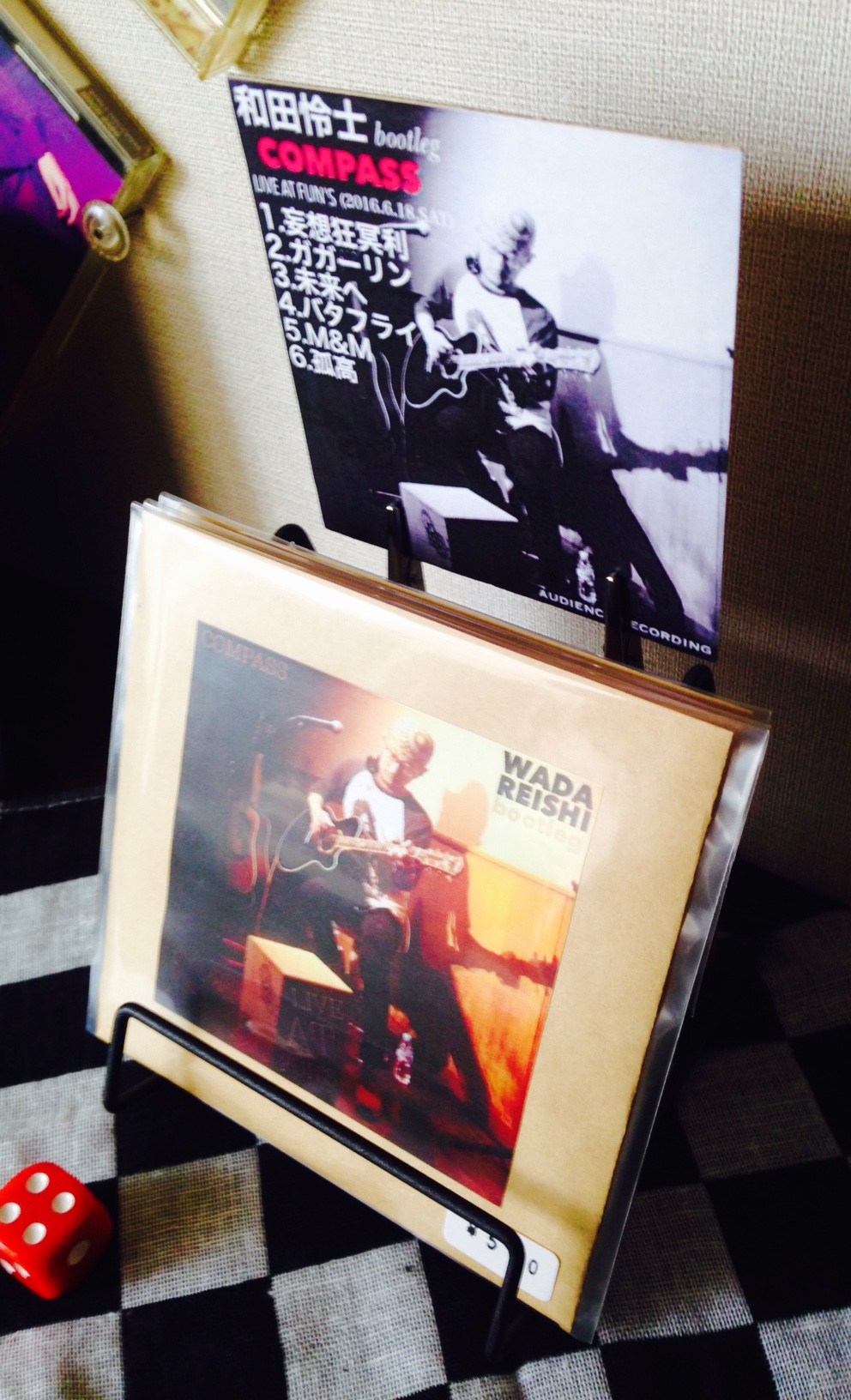 物凄く小さなスペースなので、フライヤーみたいなものを作って貼り出すということをあえてしなかった。必要以上に文字を置くとやかましくなると思った。私がどんな音楽をやっている人間なのかについては、ジャケットのデザインや、曲のタイトルや、展示の仕方を通して伝えれば良いと考えた。まさかこれを見て、「四畳半フォークの人かな?」なんて思う馬鹿はいないだろう。